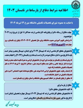 اطلاعیه تحصیلات تکمیلی دانشکده در خصوص شرایط دفاع از پارساها در تابستان 1403