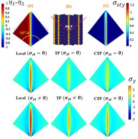 تبديل فاز یا استحالهی مارتنزيتي يك تبديل فاز مرتبه اول، همراه با تغيير مكان اتمها نسبت به هم و بدون رخداد پديده نفوذ اتمها درهم است كه نقش مهمي در ايجاد نانو و مايكروساختارها و خواص مكانيكي در بسياري از مواد نظير آلياژهاي هوشمند ايفا می کند. در اين رساله، یک مدل میدان فاز مبتنی بر الاستیسیته غیر محلی برای تحولات فاز مارتنزیتی تک و دو ورینته ناشی از تنش و حرارت در مقیاس نانو ارائه شده است. علاوه بر کرنل های متداول در الاستیسیته غیرمحلی، کرنل جدیدی بر مبنای کرنل های اصلاح شده و دوفازی ارائه می گردد که در مقایسه با کرنل های قبلی اثرات مرزی را جبران می کند. از روش المان محدود و کد نرم افزار کامسول برای حل معادلات کوپل الاستیسیته محلی / غیرمحلی انتگرالی وسینتیک گینزبرگ-لاندا استفاده شده است. نقش عمده مدل الاستیسیته غیرمحلی انتگرالی جدید در دو بخش سینتیک و مورفولوژی نانوساختارها و نیز اثرات مرزیست که در مدل های قبلی قابل توجیه نبوده است و امکان تحلیل فیزیکی استحاله فازی مارتنزیتی و پدیده های مشابه در مقیاس نانو را فراهم می کند.