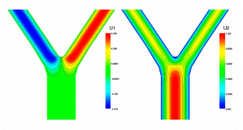 روابط موری به عنوان اصلی ترین روابط بهینگی بیان کننده ارتباط میان شعاع شاخهها و زاویه انشعاب در جریان پواسل میباشد. این روابط بیشتر در محدوده مویرگها برقرار است و با افزایش قطر عروق انحرافاتی از این رابطه مشاهده شده است. در پژوهش حاضر روابط بهینگی به جریان پالسی توسعه مییابد و با در نظر گرفتن دو قید حجم جریان ثابت سیال و ثابت بودن سطح جانبی مجرا، انحراف روابط موری توجیه میشود و روابط بهینه در جریان پالسی به صورت تحلیلی ارائه میشود. در توسعه این روابط تنها به انشعابات متقارن بسنده نشده است و روابط بهینگی در انشعاب نامتقارن نیز به صورت تحلیلی ارائه شده است. در راستای ارزیابی نتایج روابط تحلیلی بدست آمده، شیبه سازی عددی جریان در شرایط نوسانی و اعداد ومرسلی گوناگون صورت گرفته است. بر اساس نتایج بدست آمده، هندسههای انشعاب پیشنهاد شده توسط روابط تحلیلی در شرایط جریان پالسی عملکرد بهتری نسبت به هندسه موری داشته و مقاومت جریان در آن کمتر میباشد.