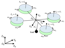 این پژوهش، کنترل اکتاروتور هممحور برای ردیابی مسیر در حضور اغتشاشات خارجی و جرم متغیر با زمان را مورد بررسی قرار میدهد. ابتدا مدل دینامیکی سیستم با در نظر گرفتن عوامل اغتشاش مختلف و جرم متغیر با زمان با استفاده از روابط نیوتن اویلر استخراج میشود. سپس ساختار کنترلی دو حلقه ای بهصورت تودرتو برای حل مسئله ردیابی مسیر ارائه می گردد. در طرح کنترلی ارائهشده، کنترل کننده پیشبین برای دینامیک وضعیت و موقعیت سیستم طراحی می شود. برای بهبود عملکرد سیستم، رویتگر اغتشاش توسعهیافته (EDOB) طراحی میشود که با استفاده از آن، جبرانسازی پیشخور برای بهبود قابلیت دفع اغتشاش در هر دو حلقه انجام می گیرد. اثر جرم متغیر با زمان که منجر به تغییر مماناینرسی و مرکز جرم کلی سیستم اکتاروتور می شود، همراه با اغتشاشات خارجی و عدم قطعیت های پارامتری، بر روی شش درجه آزادی سیستم در نظر گرفته می شوند و این عوامل توسط رویتگر اغتشاش توسعهیافته بهصورت همزمان تخمین زده می شوند. در این حالت کنترل کننده پیشبین با کمک رویتگر اغتشاش توسعهیافته، این اغتشاشات را جبران می نماید. جهت محاسبه سرعتهای زاویهای روتورها، الگوریتم تخصیص کنترل مبتنی بر بهینهسازی با قابلیت در نظر گرفتن محدودیت سرعت روتورها ارائه میگردد. سپس روش کنترلی دیگری برای اکتاروتور هممحور پیشنهاد میشود که در حلقه خارجی کنترل پیشبین موقعیت سیستم را کنترل میکند و در حلقه داخلی کنترل پسگام زوایای وضعیت را پایدار میسازد. علاوه بر این، طراحی رویتگر اغتشاش دیگری مبتنی بر الگوریتم مد لغزشی مرتبه دو ابرپیچشی (STDO) انجام میگیرد که قابلیت سیستم را برای مقابله با عوامل اغتشاش داخلی و خارجی افزایش میدهد. در نهایت، این رویتگر اغتشاش با روشکنترلی ارائهشده پیشبین-پسگام برای کنترل دینامیک شش درجه آزادی اکتاروتور هممحور مورد بررسی قرار میگیرد. از سوی دیگر، با توجه به وجود قیدهای حرکتی در سامانه های واقعی، برای محدود کردن حرکت سیستم قیدهایی در نظر گرفته میشوند. اعمال قید بر روی وسیله هوایی میتواند منجر به افزایش بار محاسباتی روش کنترلی شود. برای این منظور، طراحی کنترلکننده در این حالت به نحوی صورت میگیرد که بتوان با انجام محاسبات کمتر به این هدف دست یافت. در ادامه کار، طرح کنترلی مبتنی بر کنترل پسگام با روش پسگام انتگرالی در حلقه خارجی و روش پسگام ابرپیچشی برای همگرایی سریع پاسخ در حلقه داخلی ارائه میگردد. طرحهای کنترلی ارائهشده در حضور اغتشاشات خارجی و داخلی کلی با استفاده از شبیه سازی مورد ارزیابی قرار میگیرند. نتایج شبیه سازی ها توانایی راهبردهای کنترلی ارائهشده را در ردیابی دقیق و پرواز پایدار در شرایط مختلف حمل بار همراه با مقاوم بودن نسبت به عدم قطعیت و اغتشاش برای ردیابی مسیرهای مختلف نشان می دهند.