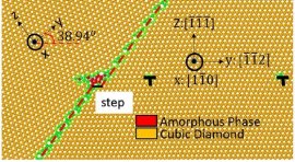 پرداخته شد. سپس به بررسی کمی و کیفی چگونگی شکلگیری نابجاییها، تنش شروع نابجاییها، رشد و انتقال نابجایی ها از یک کریستال به کریستال مجاور، تعداد نابجاییها، سرعت نابجاییها، میزان پله ایجاد شده در مرز دانه در اثر شکل گیری اولین نابجایی، مقدار انرژی حالت پایداری سه ساختار مختلف دوکریستاله سیلیکون، مقدار انرژی تلف شده در اثر ایجاد نابجایی ها، پدیده بیشکل شدن و نهایتاً مساحت ناحیه بیشکل پرداخته شد و تغییرات هر یک از موارد فوق در دماهای کاری و تنشهای برشی اعمالی مختلف مورد مقایسه قرار گرفت. اضافه می گردد که بارگذاری ها شامل اعمال تنش برشی ضمن تغییر دمای کاری میباشند که در اثر اعمال تنش برشی و افزایش دما ایجاد شده است. شبیه سازی های انجام شده در دینامیک مولکولی در نرم افزارهای آووگادرو، ویامدی انجام و در اویتو نمایش داده شده است که ضمن ایجاد قابلیت های لازم جهت بررسی خواص ریزساختار ماده، دید بسیار خوبی از بعد گرافیکی نسبت به تغییرات ایجاد شده در ریز ساختار ماده ارائه می دهند و قابلیت اندازه گیری کمیت های مورد نظر را ایجاد می نمایند. پس از ثبت کمی و توصیف کیفی نتایج بدست آمده از شبیه سازی های دینامیک مولکولی، این نتایج برای استخراج ورودیهای تحلیل میدان فاز مورد استفاده قرار گرفتند. هدف از تحلیل این داده ها در میدان فاز تعریف پارامترهای مختلف برای انرژی هلمهولتز سیستم و حل معادله گینزبرگ-لاندا بود که با استفاده از همین تحلیل، چگونگی پیدایش و رشد نابجایی ها تعیین می گردید. جهت تعریف پارامترهای مورد نیاز در رابطه انرژی آزاد هلمهولتز و معادله گینزبرگ-لاندا از نتایج به دست آمده از محاسبات دینامیک مولکولی استفاده گردید. به عبارت دیگر در بخش میدان فاز، کوپل مکانیک-میدان فاز با روش المان محدود و در نرمافزار کامسول مورد بررسی قرار گرفت. مقایسه ای بین نتایج مدل میدان فاز و نتایج ناشی از محاسبات دینامیک مولکولی صورت پذیرفت. تعداد نابجاییها و توزیع تنش در نمونههای شبیهسازی شده ارائه گردید و متعاقباً مدل فیزیکی قابل استفاده برای مدلسازی صفحات لغزش موازی ارائه گردید. در نهایت مشحص گردید که با افزایش دما و همچنین افزایش تنش برشی اعمالی بر المان شبیهسازی، سرعت نابجاییها، تعداد نابجایی، تنش نابجایی، تنش بیشینه در المان شبیهسازی همگی افزایش مییابند. این میزان افزایش در ساختار
