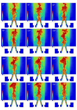 اپایداریهای ترموآکوستیک خودتحریک احتراق، همچنان به عنوان یکی از چالشبرانگیزترین مسائل در طراحی و بهرهبرداری سامانههای احتراقی رقیق و دارای آلایندگی پایین به شمار میرود. جفتشدگی غیرخطی نوسانهای فشار و نرخ آزادسازی گرما، انعطافپذیری عملیاتی و شرایط بهرهبرداری تجهیز را به شدت محدود نموده و انواع آسیبها و خستگیهای سازهای را به محفظه احتراق تحمیل میکند. علیرغم پژوهشهای گسترده پیشین در زمینه پاسخ اجباری شعلههای پیشآمیخته، مکانیزمهای حاکم بر آغاز، رشد و تبدیل به یک نوسان میرا شده، تشدید شده و یا چرخه-محدود در پاسخ خودتحریک شعله نیمهپیشآمیخته بسیار رقیق همچنان به طور کامل شناخته نشده است. این پژوهش، یک مطالعه عددی جامع و پرجزئیات از ناپایداریهای ترموآکوستیک خودتحریک احتراق در شعلههای نیمهپیشآمیخته پایدارشده با چرخش انجام شده با شبیهسازی گردابه بزرگ واکنشی (LES) و مدلسازی احتراقی پیشرفته منیفولد به دست آمده از فلیملت (FGM) مبتنی بر مکانیزمهای شیمیایی GRI 3.0 و UCSD 2016 ارائه میدهد و جفتشدگی دقیق میان ساختارهای منسجم آشفتگی، دینامیک شعله و بازخوردهای آکوستیکی را در شرایط عملیاتی رقیق و بسیار رقیق مورد مطالعه قرار میدهد. مطالعه عددی انجام شده بر پایه یک شبکه عددی بسیار دقیق و دارای 70 میلیون سلول محاسباتی، پایگاه داده تابع چگالی احتمال مشترک با تفکیک بسیار بالای شرایط مختلف واکنشی دارای توزیعهای از پیش فرضشده بتا و گاوسی، شرایط مرزی غیربازتاب کننده و انتقال حرارت مزدوج از مرز دیوارهها با ناحیه تخلیه آکوستیک استوار است. در این پژوهش، اهداف کلی تبیین مکانیزمهای ناپایداری، بررسی اثر اضافه نمودن هیدروژن بر توپولوژی شعله، آشکارسازی مود نوسانی و مطالعه تکامل فازی چرخه-محدود ناپایداری دنبال گردید. در ابتدا، شعلههای متان در نسبتهای همارزی 0/7 و 0/55 با عدد رینولدز ورودی به محفظه احتراق ثابت 10,000 مطالعه شد و نتایج عددی به دست آمده، تطابق بسیار خوبی با نتایج آزمایشگاهی گزارش شده داشتند؛ به طوری که شبیهسازی گردابه بزرگ واکنشی، دامنه و فرکانس نوسانهای جفتشده فشار و نرخ آزادسازی گرما با دقت بسیار بالایی محاسبه نمود. اعتبارسنجی جامع صورت گرفته به وسیله مقایسه محتوای فرکانسی نوسانهای عددی و نوسانهای تجربی گزارش شده از سریهای زمانی فشار و نورافشانی شیمیایی رادیکال هیدروکسیل OH* انجام شده است و بالاترین میزان خطای 10% و 28% به ترتیب در پیشبینی فرکانس (117 هرتز عددی در مقایسه 131 هرتز تجربی) و دامنه نوسان (4/7 پاسکال عددی در مقایسه 6/6 پاسکال تجربی) مشاهده شد. نتایج مربوط به احتراق متان خالص حاکی از تغییر مود ناپایداری از یک نوسان فرکانسبالای کمدامنه (حدود ۱۱۷ هرتز / 4/7 پاسکال در LES–FGM و ۱۳۱ هرتز / 6/6 پاسکال در آزمایش) به یک نوسان فرکانسپایین دامنهبالا (حدود ۸۷ هرتز / ۵۱ پاسکال در LES–FGM و ۹۱ هرتز / ۶1 پاسکال در آزمایش) بود. بررسی تکامل فازی میدانهای این دو فرایند احتراقی نشان میدهد که نوسانهای موضعی نسبت همارزی، برهمکنش گردابه و شعله در ناحیه اختلاط، تغییر در فعالیت هسته گردابه تقدیمی و هسته گردابه مارپیچی به عنوان محرکهای اصلی رشد ناپایداری عمل مینمایند. در قسمت دوم پژوهش، تحلیل عددی بر مخلوطهای متان و هیدروژن در درصدهای مولی 10% و 25% متمرکز شده و تأثیر اضافه نمودن هیدروژن به عنوان یکی از اصلیترین راهکارهای دستیبابی به احتراق سبز و مدیریت ناپایداریهای ترموآکوستیکی از طریق افزایش واکنش پذیری، تسریع پیشروی شعله و گشترش محوده اشتعال پذیری مورد مطالعه قرار میگیرد. نتایج عددی نشان میدهند که اضافه نمودن هیدروژن به طور چشمگیری توپولوژی شعله و مکانیزم لنگراندازی آن را تغییر میدهد؛ به گونهای که شعلهای فشردهتر، دارای چینخوردگی بیشتر و ناحیه واکنشی نازکتر مشاهده میشود. این تغییر در توپولوژی شعله، حلقه بازخورد ترموآکوستیکی را تغییر داده و منجر به کاهش دامنه نوسانهای فشاری تا یک مرتبه بزرگی میشود. مقایسه دقیق میان ش