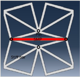 پلیمرهای حافظهدار دستهای از مواد هوشمند هستند که میتوانند شکل اولیه خود را از یک فرم موقت بازیابی کنند. فرامواد موادی هستند که خواص غیر معمول از خود نشان میدهند. مواد آگزتیک دستهای از فرامواد هستند که دارای ضریب پواسون منفی هستند. ترکیب یک ساختار آگزتیک و پلیمر هوشمند به دلیل ترکیب دو ویژگی خاصیت گستردهشوندگی همزمان در چند جهت و اثر حافظهداری، مطلوب است اما پلیمرهای هوشمند از نظر استحکام و تحمل بار، جذابیت چندانی ندارند. برای رفع این مشکل در این تحقیق، سازهی دو مادهای به صورت ترکیب یک سازه آگزتیک از جنس مادهای مستحکم و یک پلیمر حافظهدار پیشنهاد میشود. ترکیب دو یا چند ماده به این منظور میتواند در مقیاسهای مختلف و با هندسههای متفاوت صورت گیرد. به عنوان مثال سازه آگزتیک از نوع ساختار چرخشی و از جنس مادهای با استحکام و مدول بالا میتواند نقش اصلی در تحمل بار را در حالت باز شده سازه داشته باشد. در حالی که عملگر این سازه در فرآیند باز و بسته شدن میلهای از جنس پلیمر هوشمند است که پس از باز شدن کامل سازه تقریبا نقشی در تحمل بار ندارد و به دلیل داشتن اثر حافظهداری سازه را به حالتی میبرد که انتقال بار توسط سازه اگزتیک انجام شود.