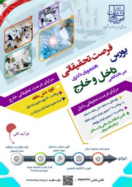 فرصت تحقیقاتی بورس دانشجویان داخل و خارج از کشور بین دانشگاهی اطلاعیه فرصت تحقیقاتی بورس دانشجویان داخل و خارج از کشور بین دانشگاهی به پیوست می باشد.