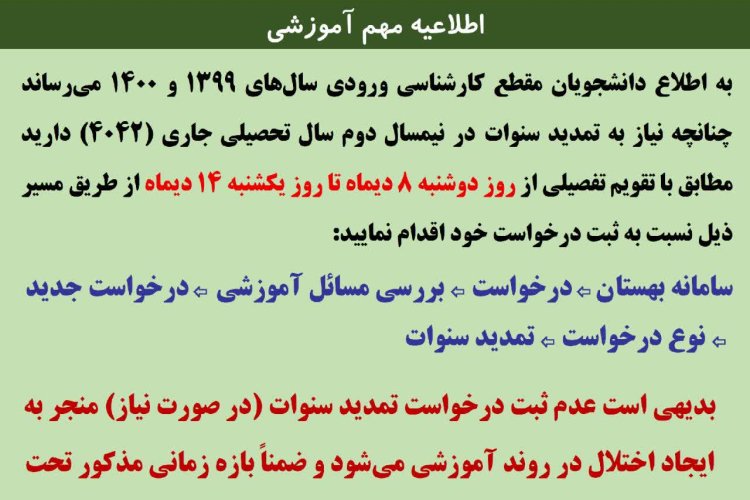 اطلاعیه تمدید سنوات