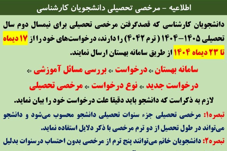 اطلاعيه درخواست مرخصي تحصيلي