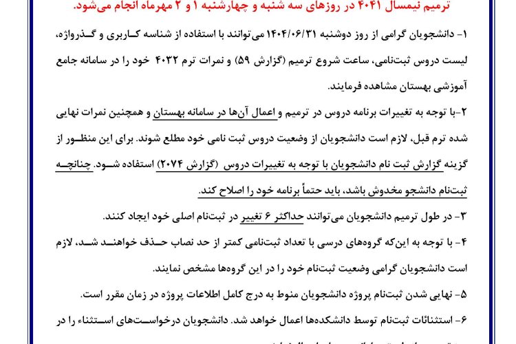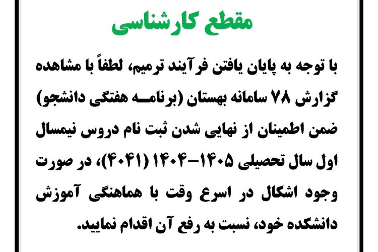 به پيوست اطلاعيه ترميم نيمسال اول سال تحصيلي 1405- 1404 می باشد.