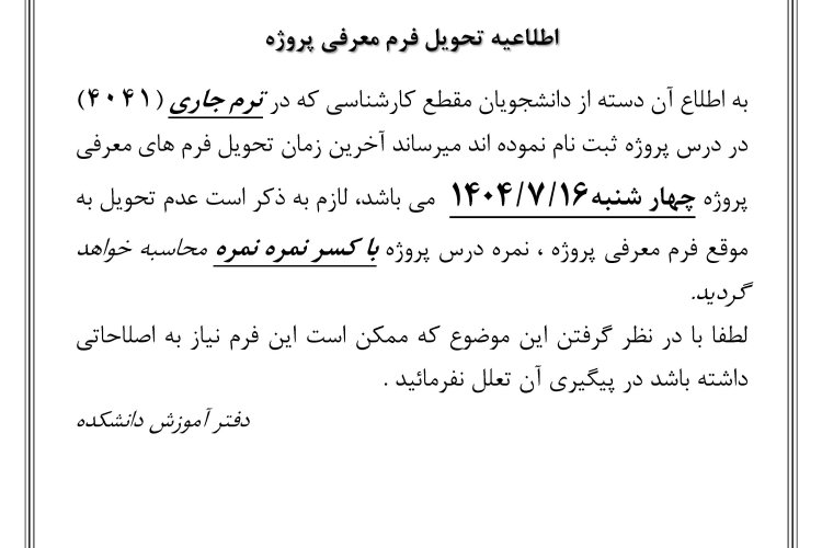 اطلاعیه تحویل فرم پروژه ترم جاری 4041